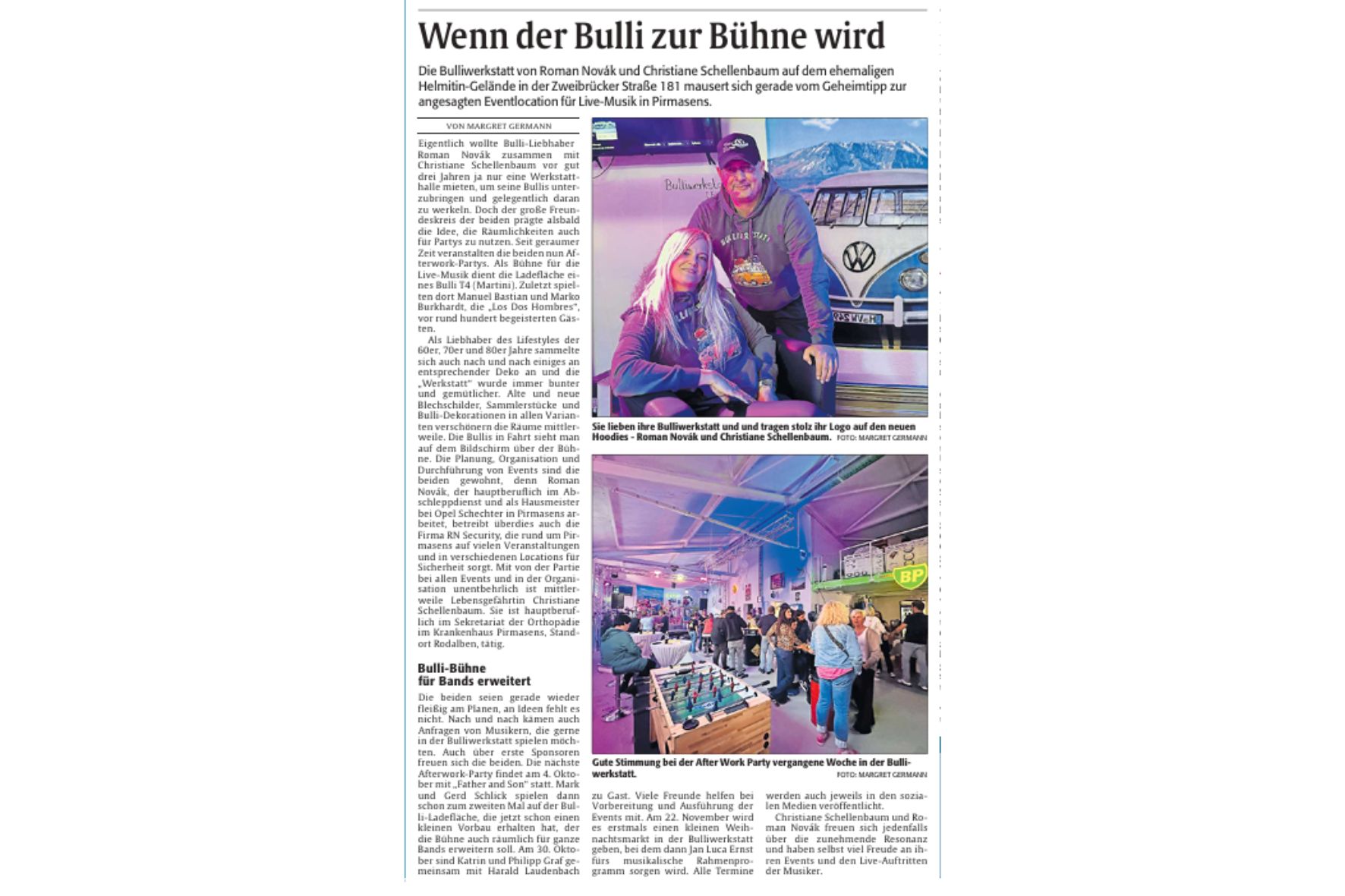 Nach einigen After-Work Parties mit Live Musik, wird es am 22. November nun auch einen erstmals einen kleinen Weihnachtsmarkt in der Bulliwerkstatt, in der Zweibrückerstrasse 181 (ehem. Helmitin-Gelände) geben.